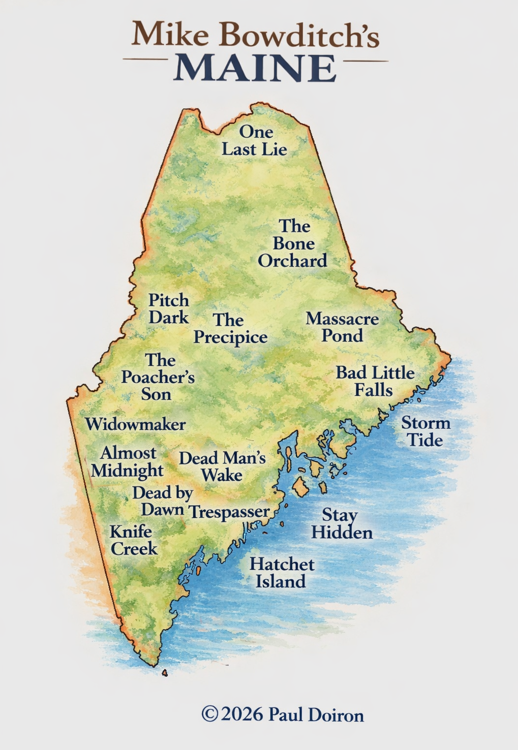 I've always thought of Mike Bowditch's story as a map. Over sixteen novels, I've moved him across Maine—from the North Woods to the Midcoast, from the border with Quebec to the islands Down East. Each location shapes the case he's working, but more than that, it shapes who he becomes.